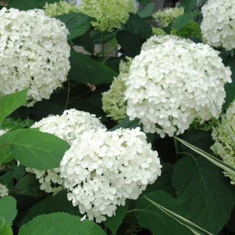 Гортензия древовидная Хиллс оф Сноу представляет собой густой куст, вырастающий до 1-1,5 м в высоту. Образует полусферические соцветия 10-15 см в диаметре, состоящие из стерильных цветков, которые сначала имеют зеленовато-белую окраску, затем становятся кремово-белыми, потом – снежно-белыми, а к осени приобретают розоватый оттенок. На титульном фото хорошо видно форму и окраску соцветия. Гортензия Хиллс оф Сноу цветет очень обильно с июля по сентябрь. Соцветия образуются на побегах текущего года.
