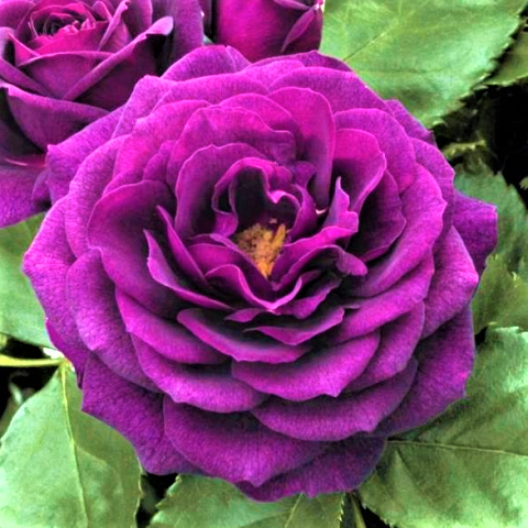Мистерьез - цветки чашевидные, умеренно-махровые (в полном роспуске показывают серединку), яркие, фиолетовые, сиреневые или красновато-лиловые с более светлыми полосками, в небольших соцветиях. Аромат сильный. Цветение повторное, в течение сезона. Кусты энергичные, сильные, высотой 100-120 см.