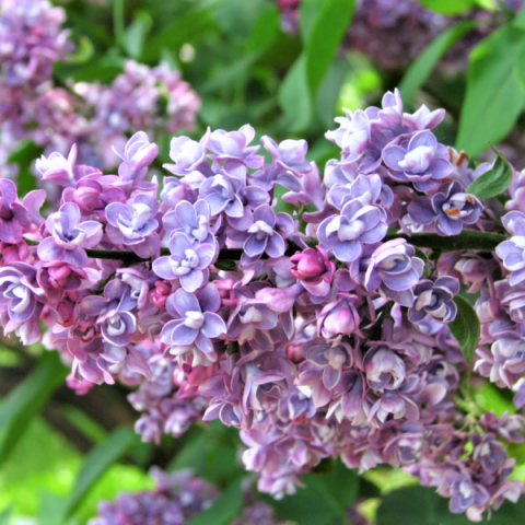 Сирень обыкновенная - крупный кустарник иди дерево, с сердцевидными, плотными, темно-зелеными, голыми листьями. Душистые цветки собраны в крупные, пирамидальные соцветия до 20 см длиной. Цветки простые или махровые с широкой гаммой окраски и различных оттенков. В цветение вступает в четырехлетнем возрасте. Один из самых распространенных приусадебных красивоцветущих растений.
